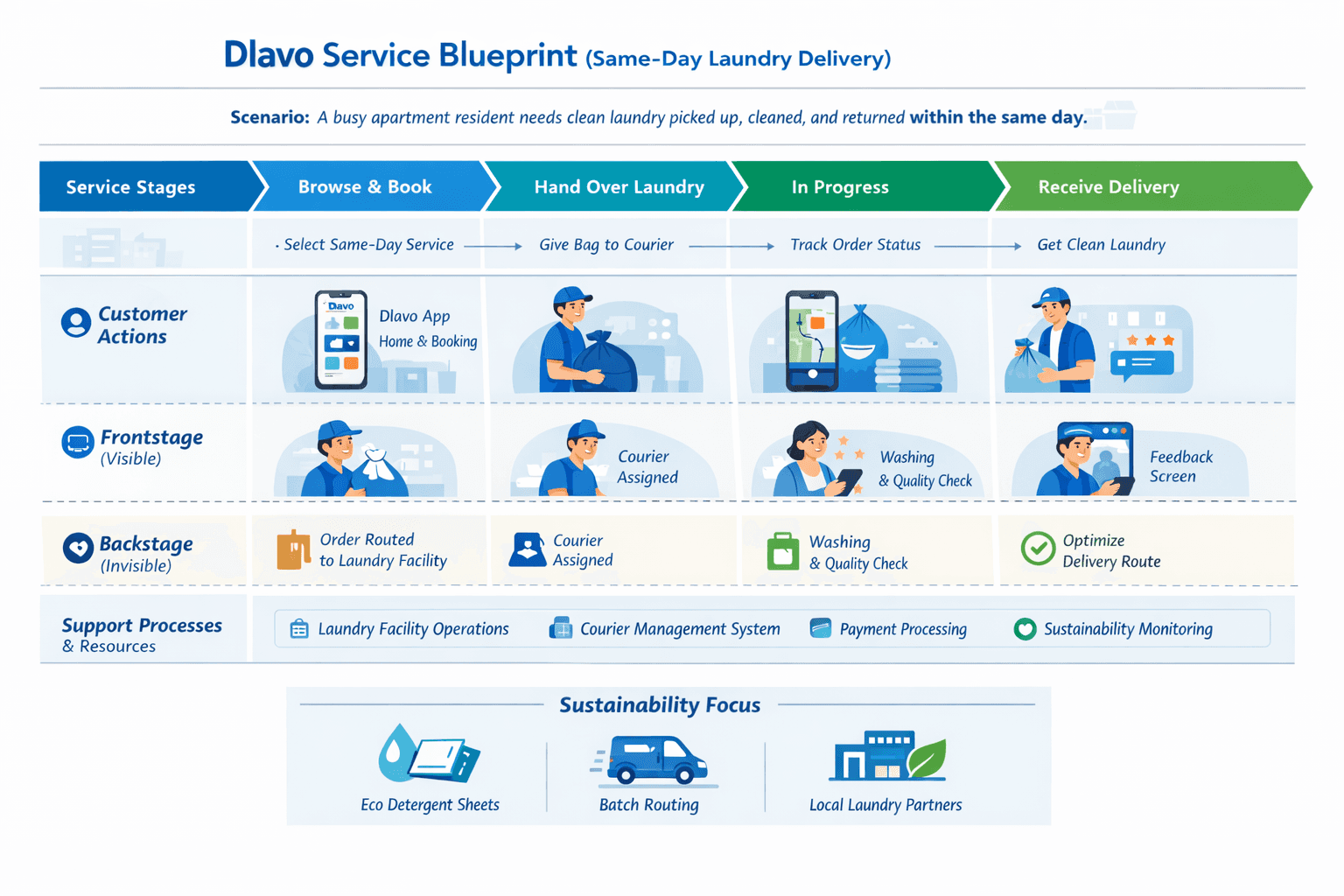 DLAVO users seek efficiency because laundry is a recurring, low-engagement task. As users become repeat customers, they expect faster paths, fewer decisions, and interaction patterns that allow them to build orders with minimal effort. When the experience requires multiple steps for simple actions and lacks personalization cues, perceived friction increases, even if the service itself remains reliable, this causes user retention to increase