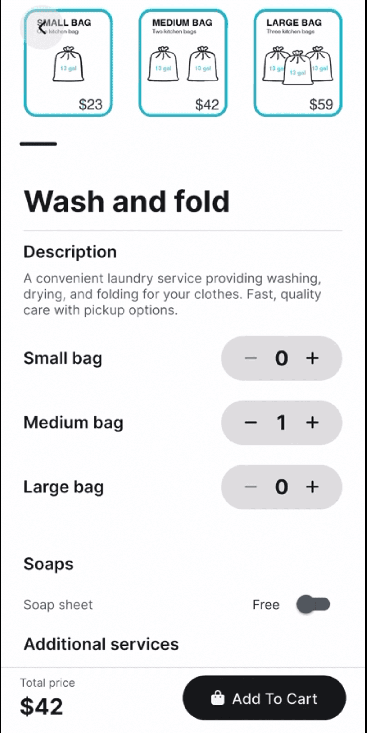 While the V1 design successfully supported a limited set of laundry services, its linear, block-heavy interaction model did not scale as new features were introduced. As more services and options were added, users were required to navigate through multiple screens and confirmation steps for simple actions. The interface also lacked personalization signals, such as popular or recommended services that forces users to repeatedly scan and evaluate options. This resulted in increased friction, slower task completion, and a missed opportunity to support fast, habitual ordering behaviors.