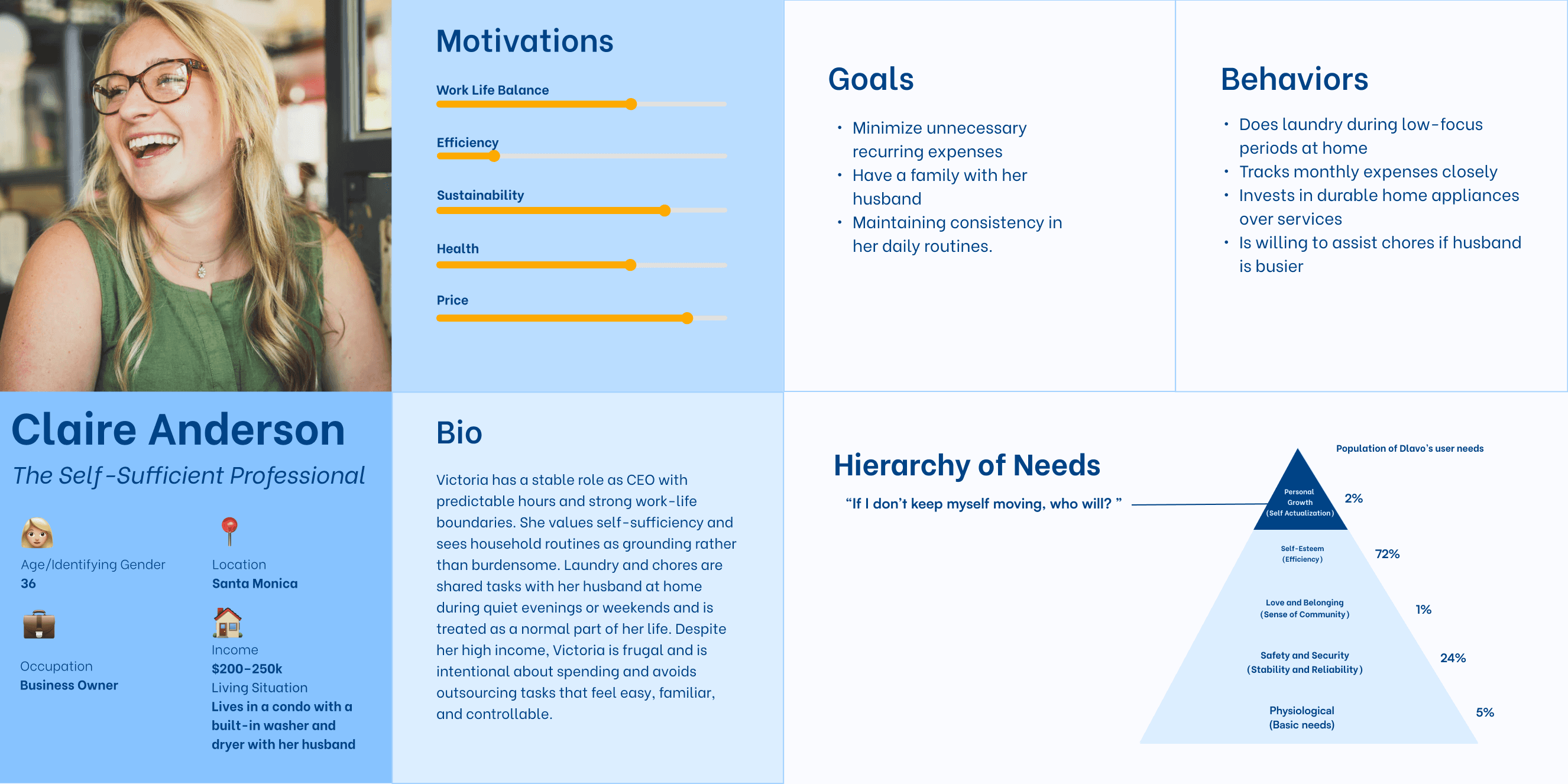 Anti-personas are important for when we want to research users who are not part of the segment. Some anti-personas can become core personas if product strategy is to incorporate scalability. In this case, this persona's key motivation is work-life-balance, sustainability and price.