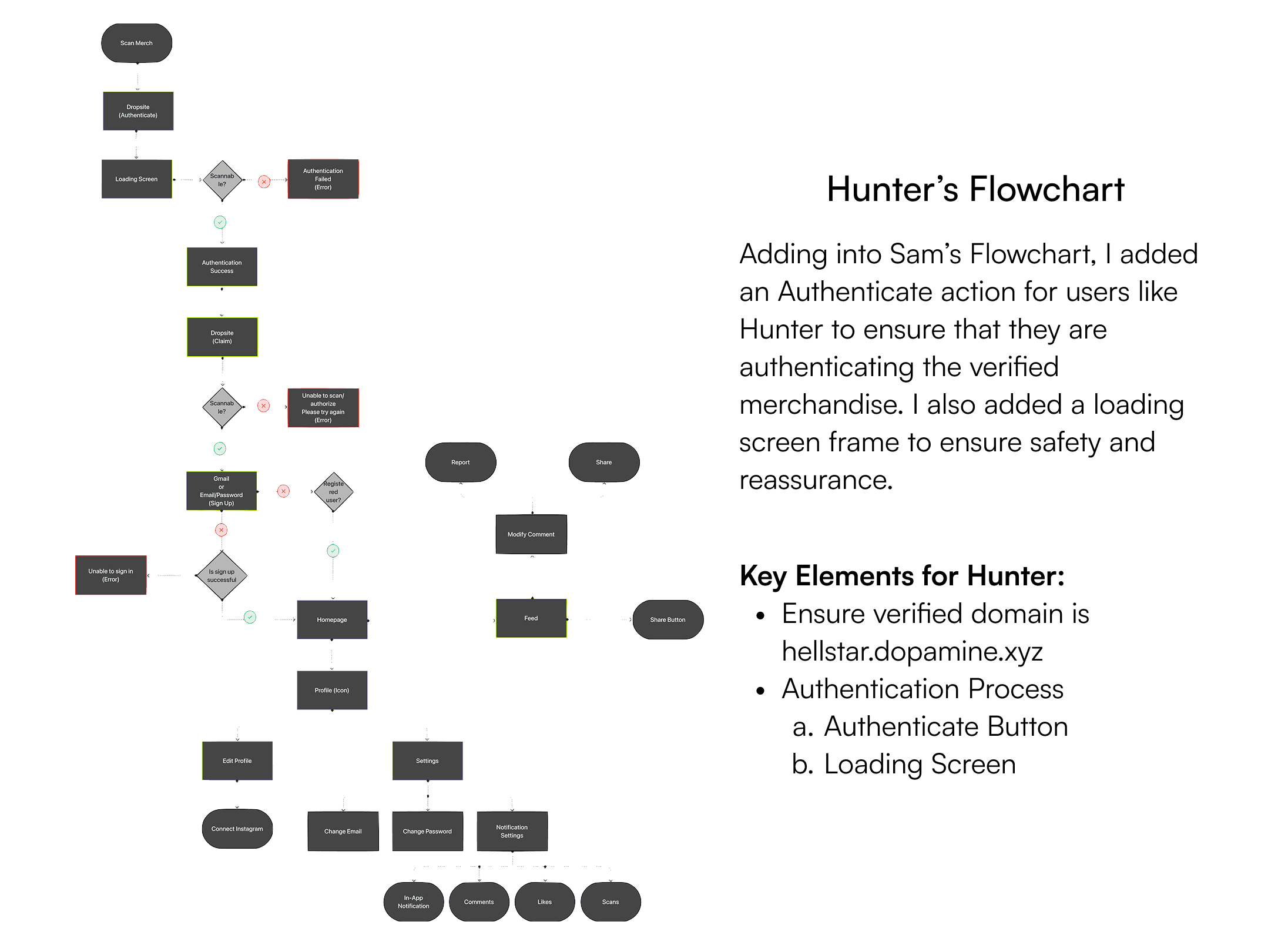Moreover, by my competitive analysis, brainstorming for more differentiated features and content will allow Hellstar to tailor the authentication app for their branding and for users to experience Hellstar’s “Streetwear Hype” so the need for users to be confident in using Dopamine’s app is essential for building this app.