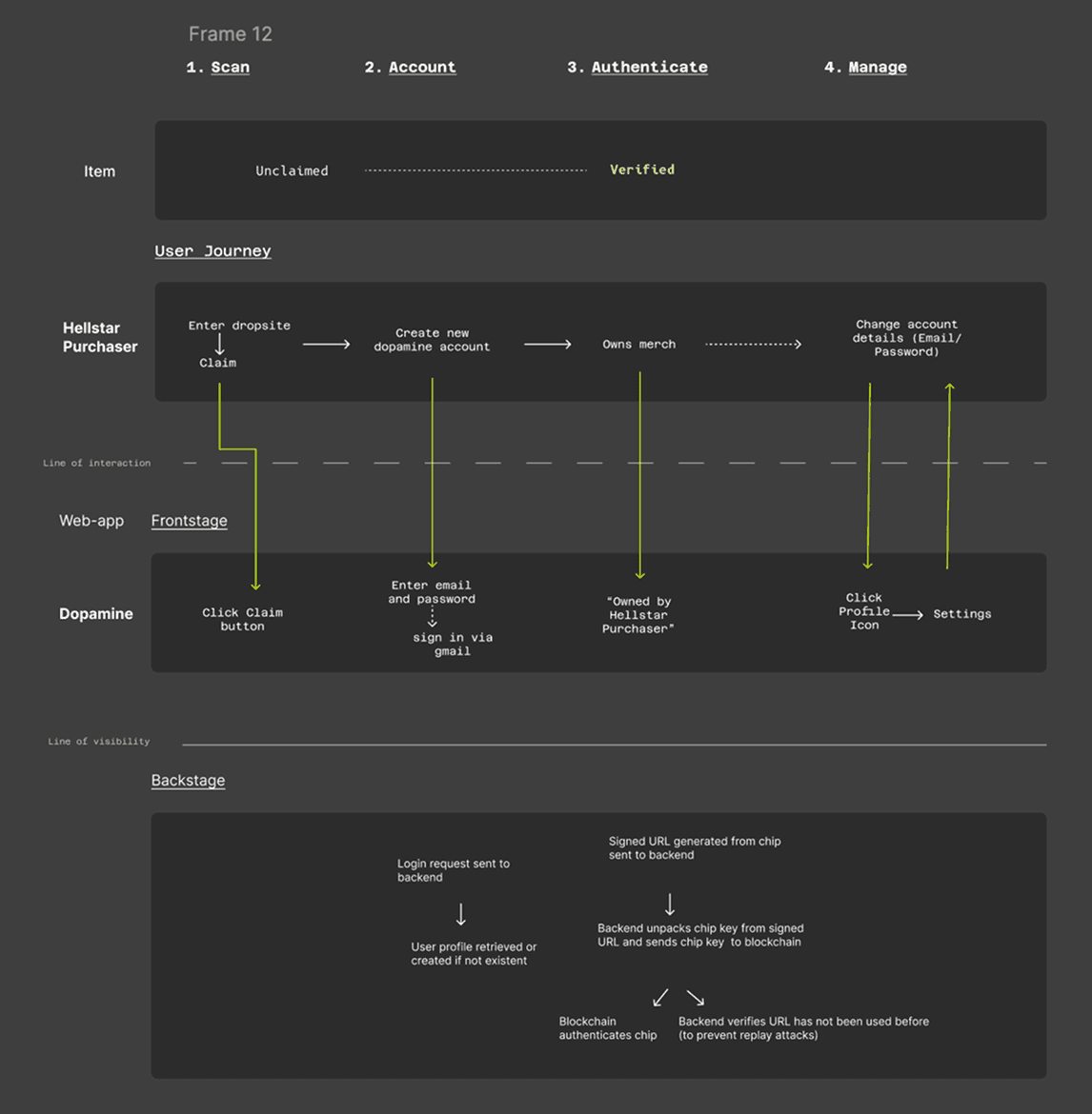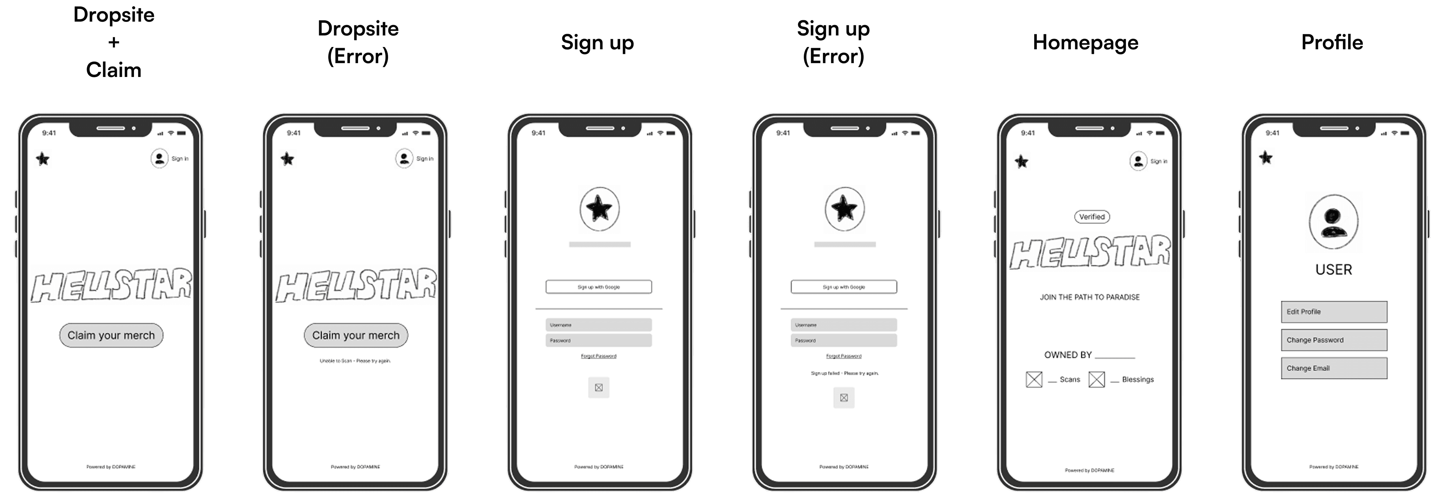 For the first prototype, I made sure that I had all the basics covered for key user journey of a Hellstar buyer that includes; Scan, Claim, Account, Authenticate, and Manage.
