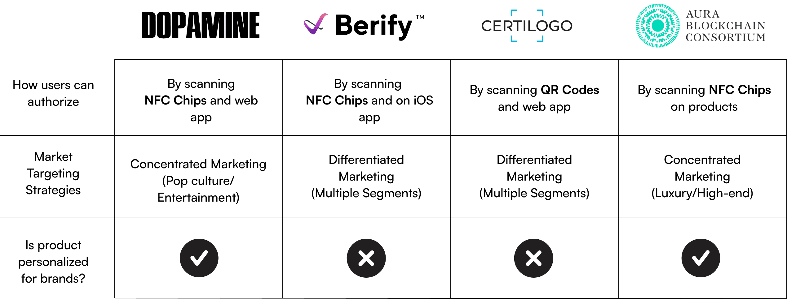 To understand more about authentication brands, I analyzed how Dopamine can differentiate with other brands and who/what Dopamine is competing with.
