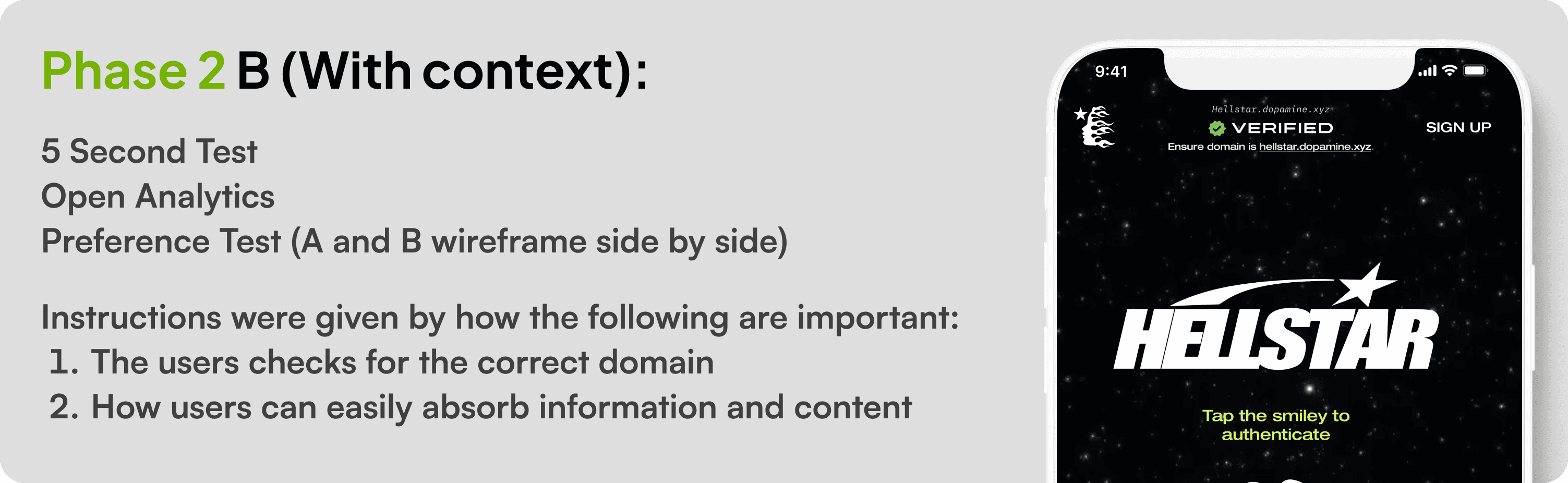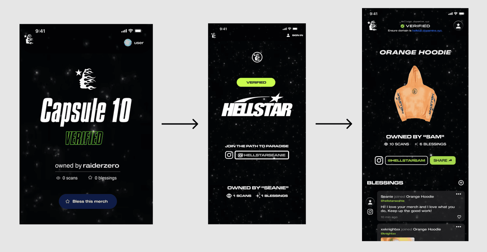 Users like Hunter wants a secure process for their purchased product so authentication security is important including how the web-app or the NFC chips aren’t fake and making sure the website is a verified hellstar.dopamine.xyz.